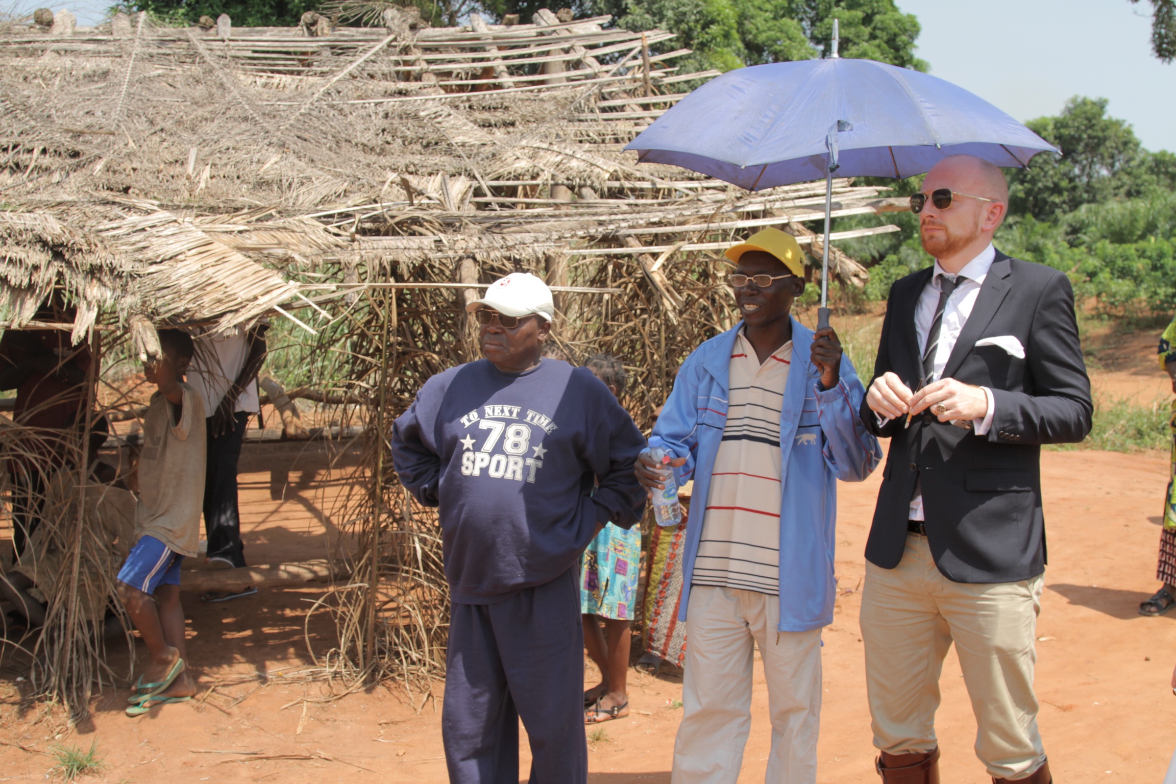 Mr. Cortzen, Paul and Minister Gaston Mackouzangba in the Pygmy village